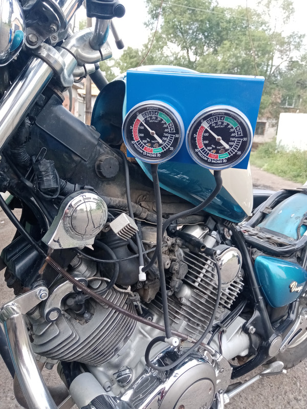 Короче история такая. Сто лет не регулировал клапана. После покупки мотоцикла, проверил зазоры там где мог легко подобраться. Задний выпуск понятное даже не полез. Короче через три сезона решил все таки залезть. С другом занялись, зазоры были везде 0,25-0,30 просто огромные особенно на заднем горшке, отрегулировали, завели на обогатители и минут через 10 мотику поплохело так, что от 1100 осталось 550, задний цилиндр вообще потух. Стоим смотрим друг на друга и не понимаем что наделали. Написал с перепугу Атаману. Разобрали все обратно, перепроверили метки, зазоры, ну не придраться. Выкручиваю свечи, а там ахтунг полный, задний вообще в шубе чернее ночи, сгонял за свечами, поменяли. Мотик завелся с полтычка работает норм, работает ровно, проблем нет. Откатал так около двух тысяч км, в одно сибирское утро на улице с утра +12, завел на обогатителе и пока там гараж, куртка и т.д прошло минут 5-7, поехал на работу, на первом светофоре пропадают холостые, мотик прям не охотно набирает обороты, короче опять засрало свечи, так как живу в одном городу работаю в другом, то выехав на трассу дал гари и как бы опять все пришло в норму. Короче получается, так. что все работает отлично ровно до того момента, пока я не открою обогатитель, с ним мгновенно засират свечи, чего ранее не было. Причем судя по свечам больше всего срет задний цилиндр. Ну думаю пора бы проверить зазоры клапанов, дальше синхрон и дальше смесь покрутить. Снова внедрились в клапана, там все норм, зазор в зазор. Цепляю синхронизатор который я сто лет назад брал на алишке еще для чесотки, вижу рассенхрон, фото приложу, не знаю на сколько это было критично, отсинхронил карбы и после синхронизации как вот не так он стал работать по звуку, то синхронизации звук был на как у харлея с его патейту но это пофиг, стало что то потряхивать мот. Так как синхронизатор китайский китай, я несколько раз проверил синхронизацию, меня приборчики местами. Стрелки стали на одном уровне, одновременно вверхх и в низ. Что сразу заметил. что мотик стал острее реагировать на открытие газа. Но при этом холостые не стабильные и попердывает кто то в глушитель. Синхрон в сторону. полез я в винты ачества, на удивление все легко крутиться и под заглушками все чисто. Следую инструкции в этой теме начал регулировку смеси, выставил 1000 оборотов, начал с заднего горшка, смутило, что винт качества откручен оборотов на 6 был, я его закрутил. обороты упали, поднял до 1000 и с тал откручивать. Реагировать мотик перестал уже на одном обороте, чутка вернул назад, получилось где то 0,8 оборота. Перебрался на передний горшок, тут было оборота 3, а стало 1,5. Подцепил синхрон проверил, все норм. Но вот холостые не стабильные, с попердыванием в глушитель остались. Такое чувство что один горшок не стабильно работает, но только на холостых, я грешу на задний, так как там с винтом качества не совсем понятно, совсем что то мало я его открутил. С первого дня покупки меня еще смущало как мотик реагирует на барашек холостых, берусь руками за сам привод и вот при малейшем давлении на него обороты поднимаются, кручу барашек, кручу кручу и оп начинают поднимаюся, выставил 1000 проехал, обороты 1500, снова выставил 900-1000, прокатился, обороты 300. Может ли что то с этим барашком случиться? Короче после всех манипуляция, что порадовал, мотик всё так же хорошо заводится, острея стала реагир