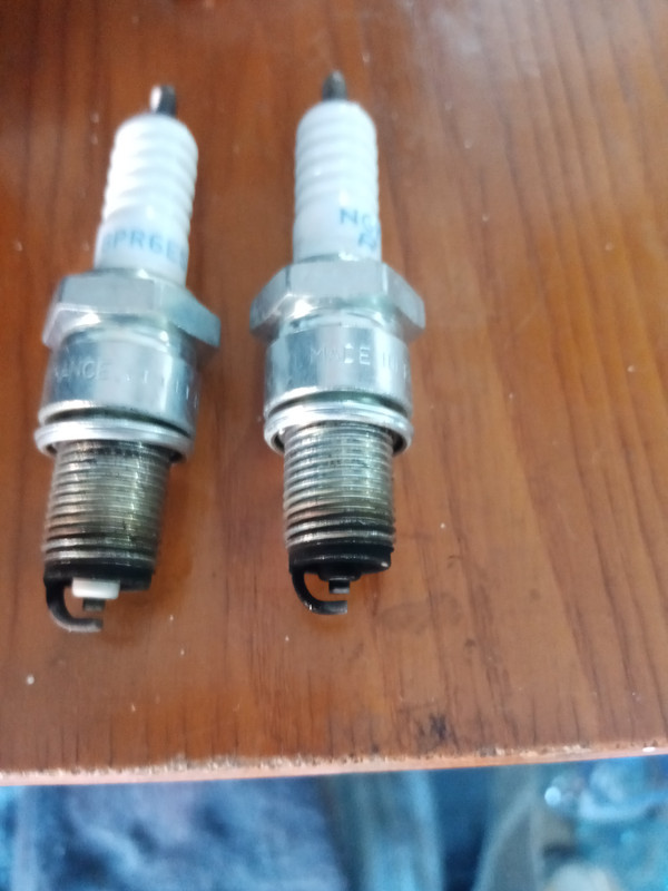 Вот такие свечи до всех регулировок, задняя ощутимей засрана.